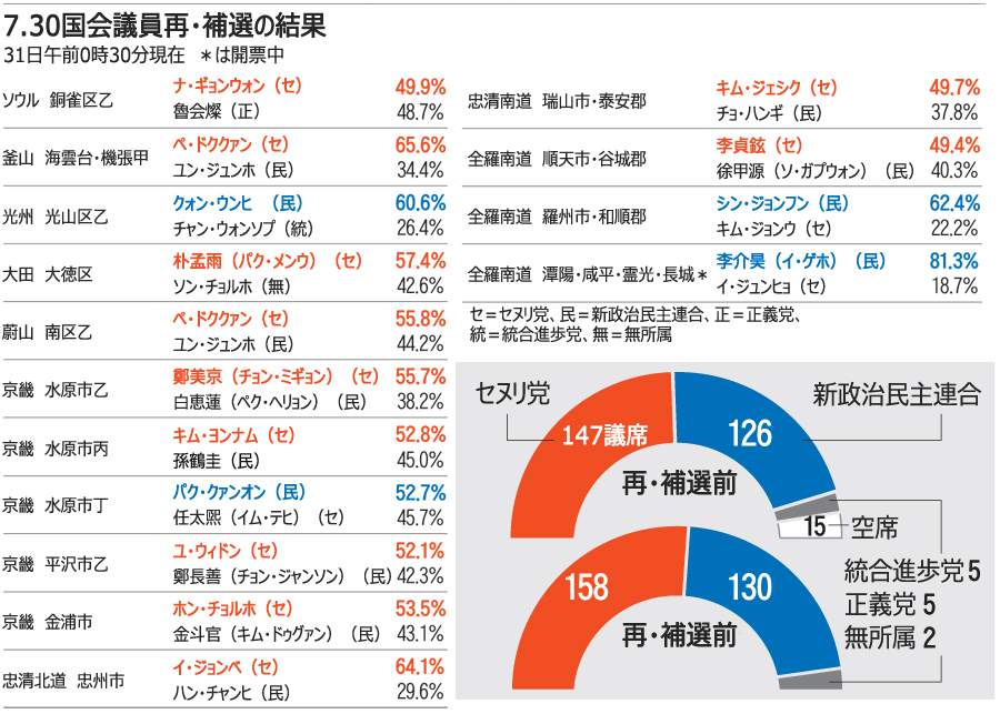 韓国与党が補選圧勝で過半数、野党代表きょう辞任へ(2/2)