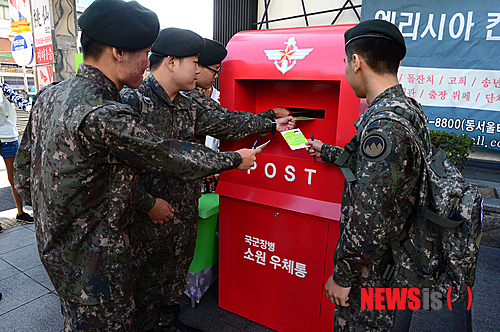 「願いかなうポスト」に投函する将兵たち(2/7)