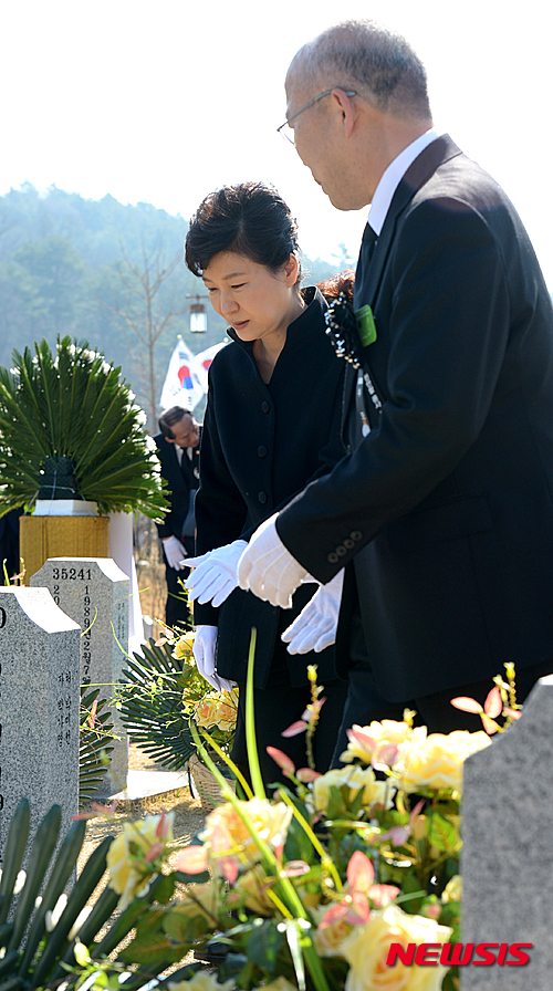 参拝する朴槿恵大統領=「天安」沈没から5年(11/11)