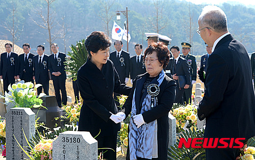 参拝する朴槿恵大統領=「天安」沈没から5年(5/11)