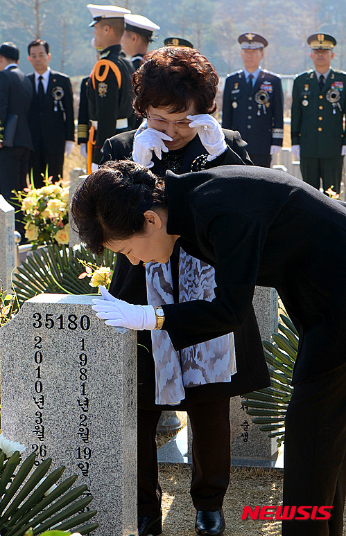 参拝する朴槿恵大統領=「天安」沈没から5年(6/11)