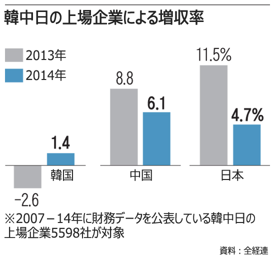 韓国企業の成長性、日本企業に抜かれる(1/1)