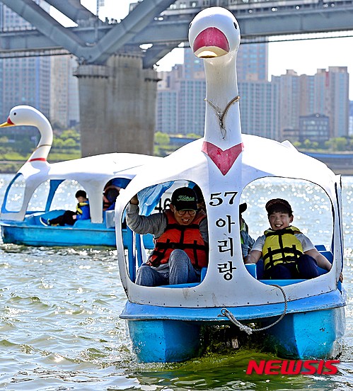 スワンボートレースを楽しむ市民たち(5/9)