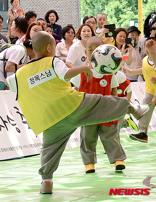 サッカーを楽しむ子ども僧たち(6/11)