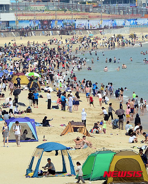 早くも海雲台海水浴場は大にぎわい(5/7)