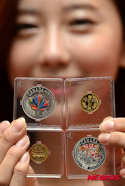 カナダ大会の記念硬貨発表=サッカー女子W杯(4/8)