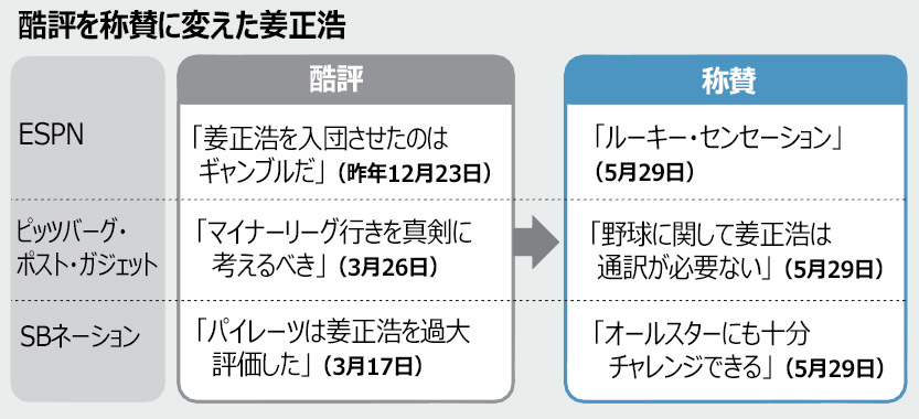 MLB:酷評一転、称賛浴びる姜正浩(2/2)