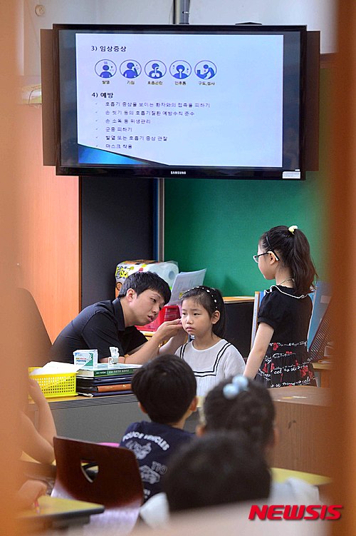 MERS感染拡大受け、学校で体温チェック(5/7)