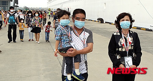 MERS:クルーズ客船済州到着、マスク姿の中国人観光客(4/8)