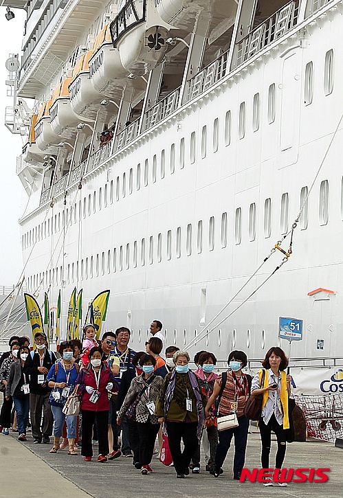 MERS:クルーズ客船済州到着、マスク姿の中国人観光客(5/8)