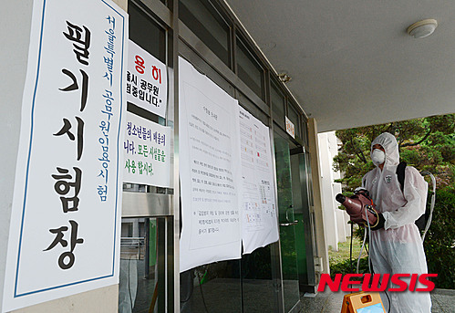 MERS:公務員試験会場で消毒作業(3/7)