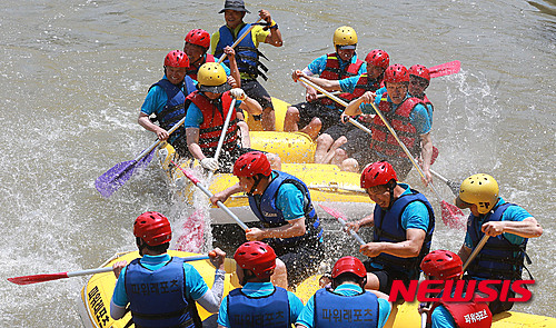 暑さを吹き飛ばせ! 厳川江でラフティング(2/6)