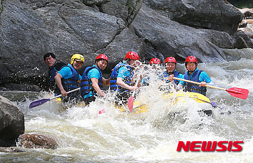 暑さを吹き飛ばせ! 厳川江でラフティング(3/6)