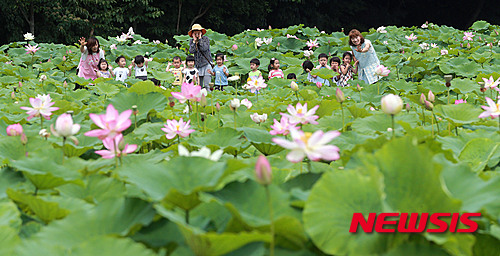ハスの花に囲まれて…(2/5)