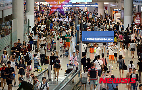 旅行客で混雑する仁川空港(8/11)