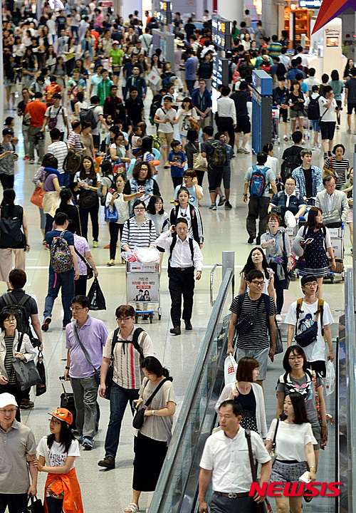 旅行客で混雑する仁川空港(9/11)