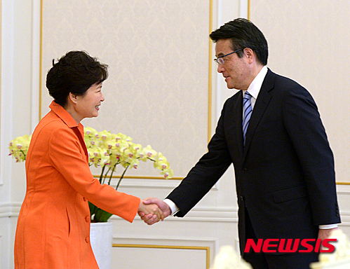 朴大統領、岡田・民主党代表と対面(4/6)