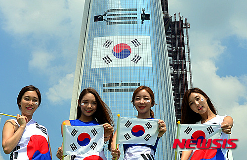 太極旗と一緒にポーズ(7/14)