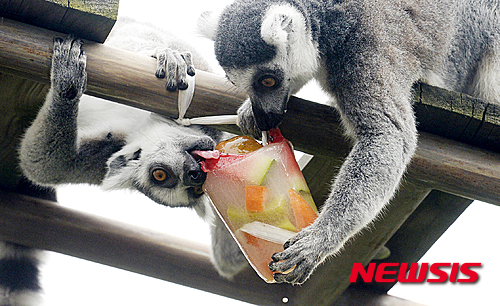 冷凍フルーツで涼を取る動物たち(2/10)