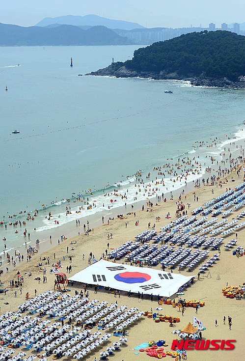 海雲台海水浴場に巨大な太極旗(3/7)
