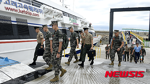 「準戦時状態」解除、休暇に出る海兵隊員たち(2/6)