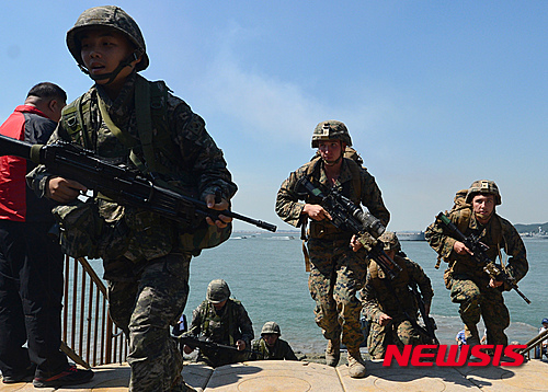 韓米の海兵隊が「仁川上陸作戦」再現(2/15)