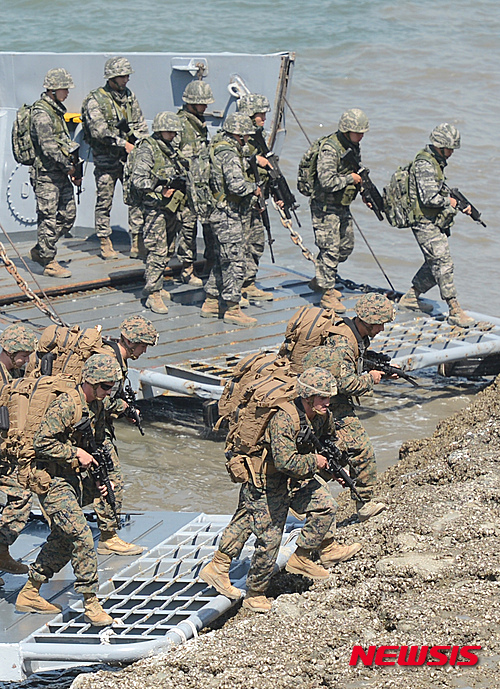 韓米の海兵隊が「仁川上陸作戦」再現(5/15)