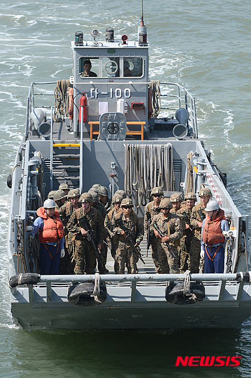 韓米の海兵隊が「仁川上陸作戦」再現(8/15)