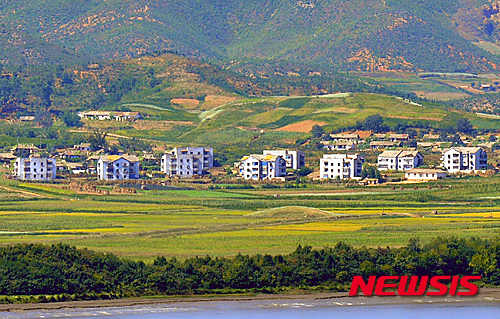 田畑が黄金色に輝く北朝鮮の村(2/8)