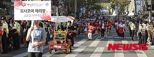 華やかにパレード=韓日交流おまつり(12/14)