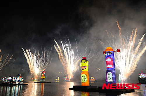 晋州南江流灯祭りが開幕(4/12)