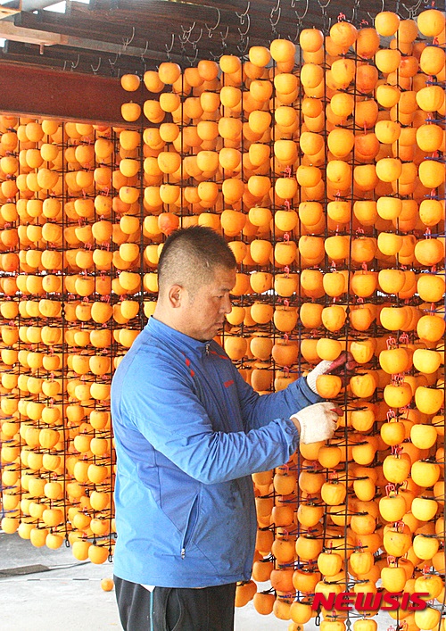オレンジ色が鮮やか、柿のカーテン(1/7)