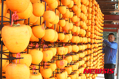 オレンジ色が鮮やか、柿のカーテン(2/7)
