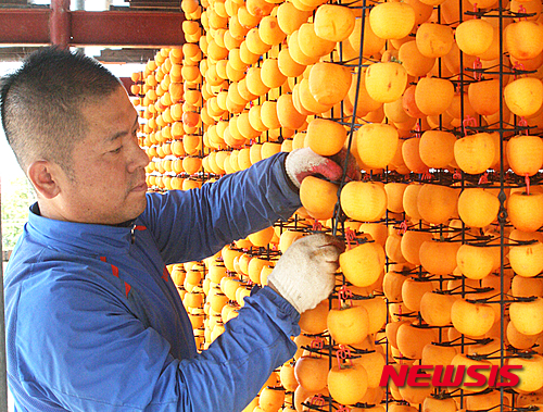 オレンジ色が鮮やか、柿のカーテン(3/7)
