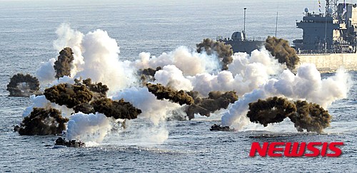 釜山で観艦式=海軍創設70周年(2/7)
