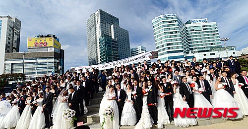 海雲台で中国人カップル100組が合同結婚式(2/12)