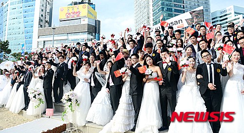 海雲台で中国人カップル100組が合同結婚式(10/12)