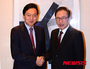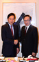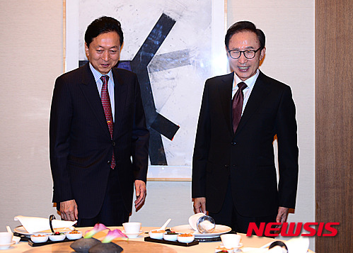 握手する李明博元大統領と鳩山由紀夫元首相(9/11)