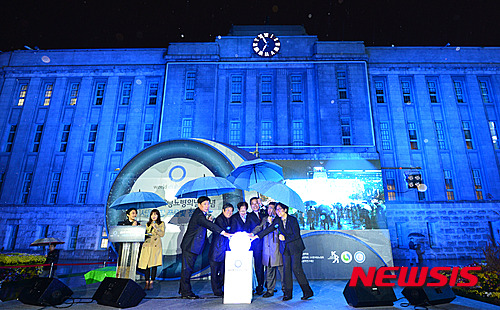 青一色にライトアップされた旧ソウル市庁舎(6/10)