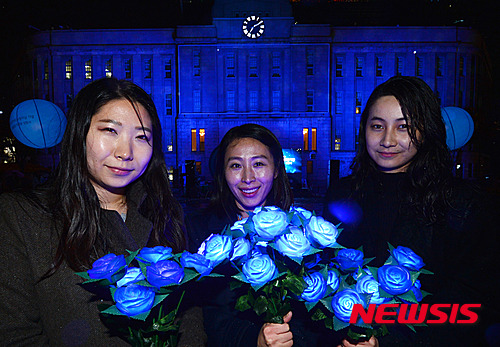 青一色にライトアップされた旧ソウル市庁舎(8/10)