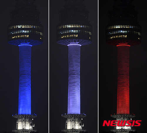 Nソウルタワーが仏国旗カラーに(2/3)