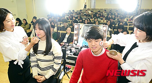 メーク法を学ぶ高校生たち、男子生徒の姿も(2/4)