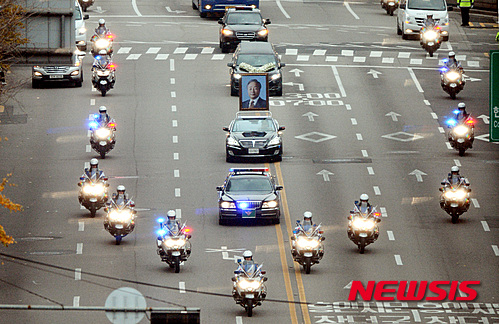 金泳三元大統領の遺体を乗せた霊きゅう車の列(4/12)