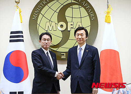 挨拶をかわす韓日外相(3/9)