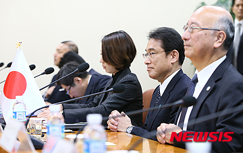 挨拶をかわす韓日外相(8/9)