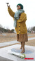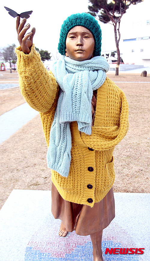 毛糸の服着る光州の「平和の少女像」(1/9)