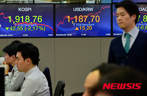 新年最初の取引でKOSPI急落、ウォン安に(8/9)
