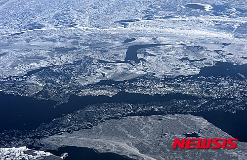 連日の厳しい寒さで凍った漢江(6/11)