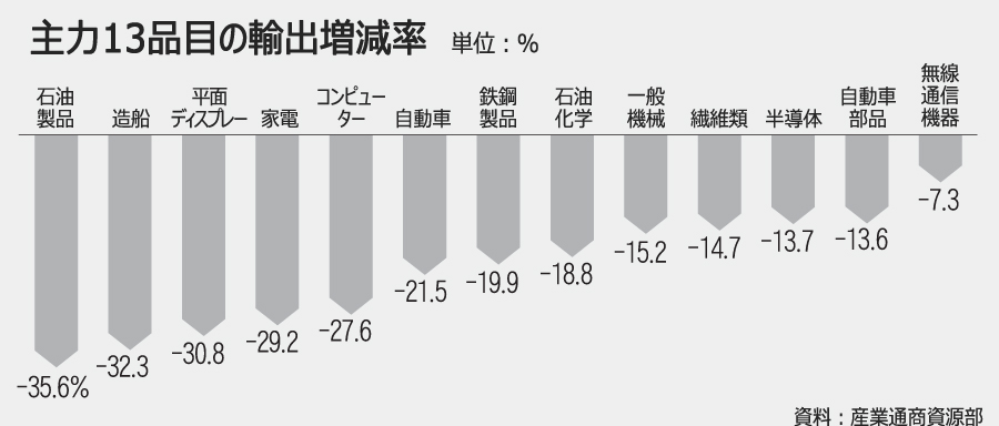 1月輸出前年同月比18.5%減、悲鳴を上げる韓国経済(2/3)
