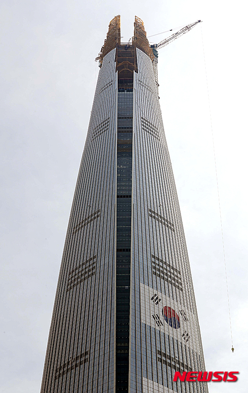 高さ555メートルに到達したロッテワールドタワー(7/8)